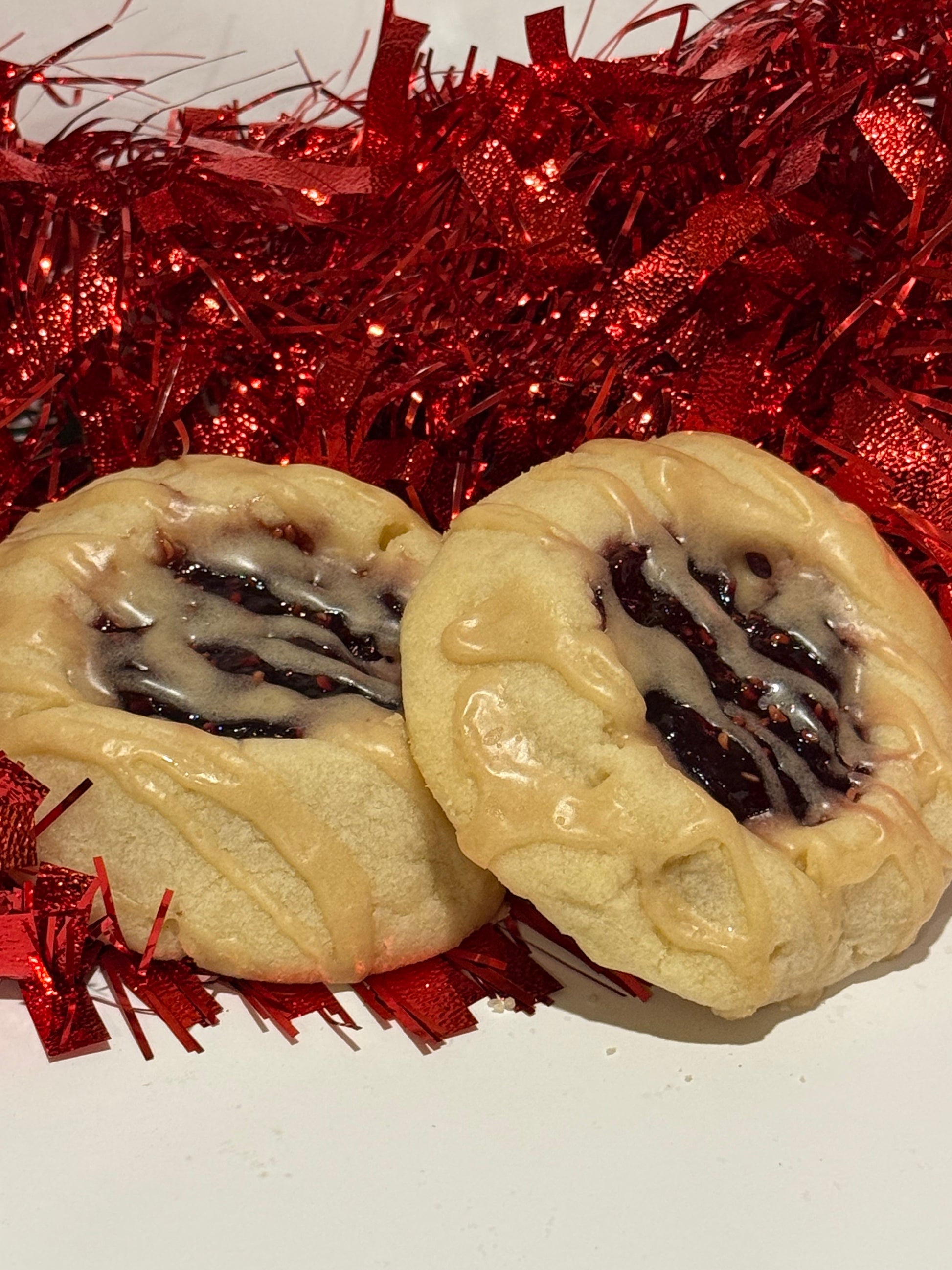 A soft, buttery shortcake cookie with a sweet little thumbprint surprise! Made with a hint of almond and filled with bright raspberry jam, it’s like a bite-sized hug with a fruity wink. Perfect for snack time, tea time, or anytime you need a little joy.